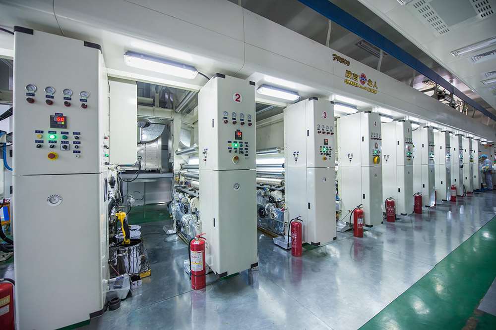 擁有齊全的先進(jìn)的實(shí)驗(yàn)室檢測設(shè)備(如美國安捷倫氣相色譜儀、紅外光譜儀等)、自動(dòng)化高速單元式印刷機(jī)3臺(tái)、鋁箔(PVDC)印刷涂布機(jī)2臺(tái)、干式復(fù)合機(jī)2臺(tái)、環(huán)保型無溶劑復(fù)合機(jī)3臺(tái)、高性能多層共擠上下吹膜機(jī)4臺(tái)、流延擠出機(jī)1臺(tái)、薄碼噴涂檢品機(jī)5臺(tái),分切機(jī)6臺(tái)、制袋機(jī)生產(chǎn)線25臺(tái)、鋰電池用鋁塑膜相關(guān)設(shè)備5臺(tái)。年設(shè)計(jì)生產(chǎn)能力1萬噸,年產(chǎn)值4.0億元。